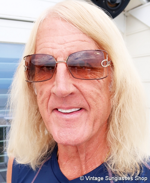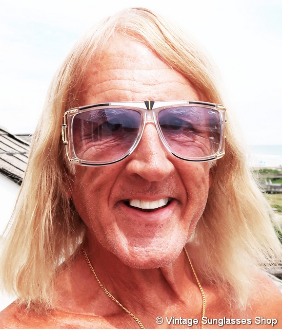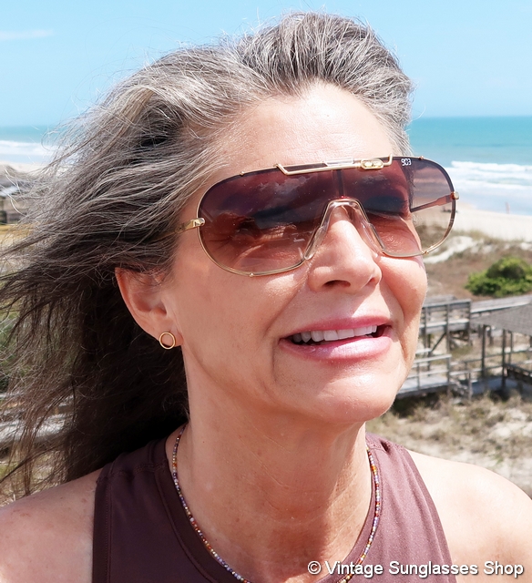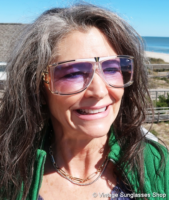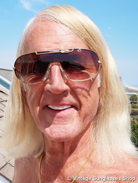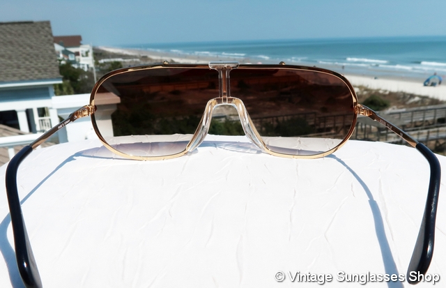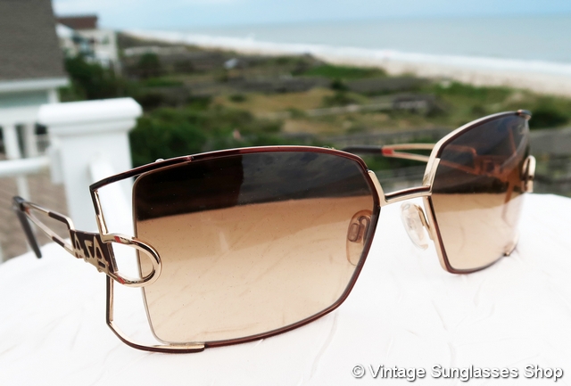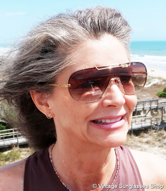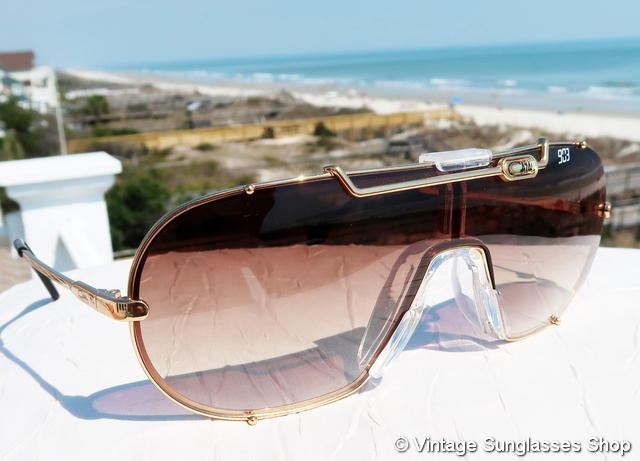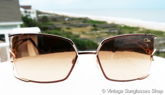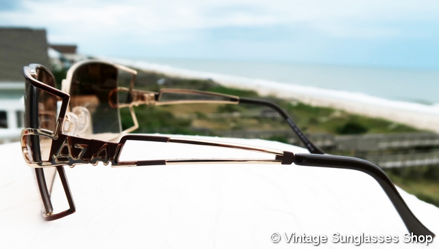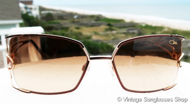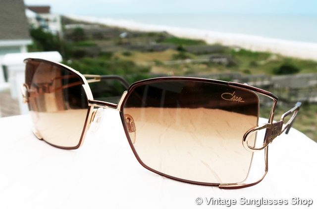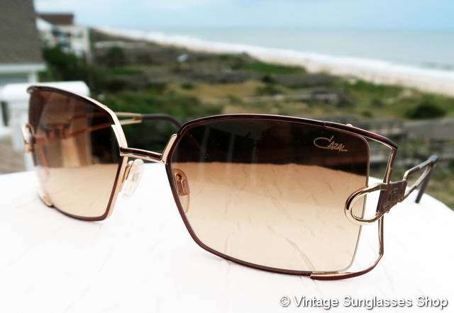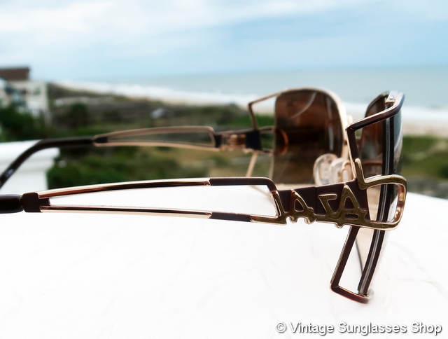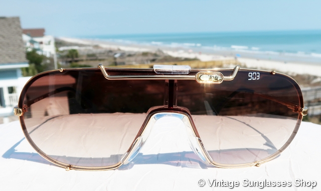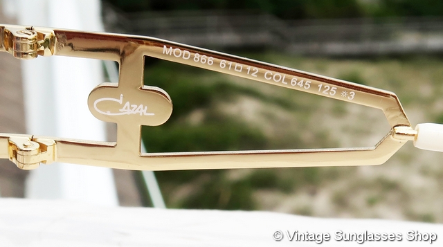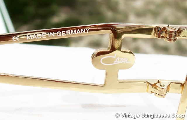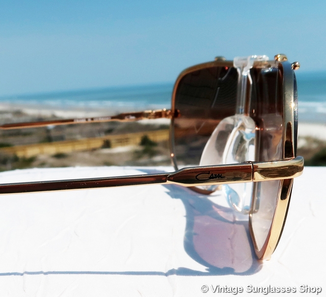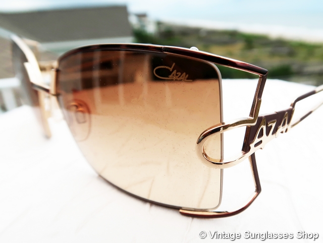 Vintage Cazal 976 130 sunglasses are unique and eye catching in design, typical for the early Cazal styles designed by founder Cari Zalloni. It's a gold plated frame with the Cazal logo in large letters forming the front of the ear stems and combining as the way the sides of the front lenses are secured in the frame. Just try finding that with any other brand of vintage designer sunglasses! It's easy to see why Cazal is the brand so often seen on Hollywood celebrities. Tell