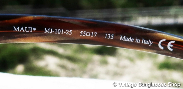 VS4035: Vintage Maui Jim MJ-101 25 Kala sunglasses feature eye catching and distinctively curved tortoise shell ear stems and early Maui Jim gold top gradient mirror mineral glass lenses in one of the very first styles introduced by Maui Jim. Maui Jim MJ-101 Kala sunglasses look equally at home at the beach or at the most formal of outdoor occasions, and it's certain you'll never see anyone else wearing your sunglasses when you sport the Kala! Tell