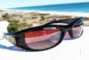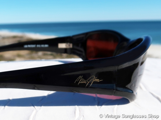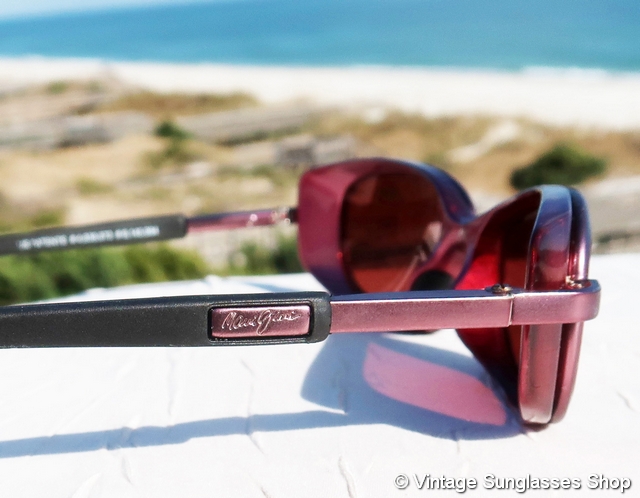 Vintage Maui Jim MJ-105 02 Shaka sunglasses feature a distinctively thick front frame and ear stems, pretty unique among vintage Maui Jim styles, and here you also get some beautiful Maui Jim rose double gradient mirror mineral glass lenses that are sure to generate looks whenever you wear them. It's also a subtle wrap design that will provide some extra wind and glare protection from the sides. Tell