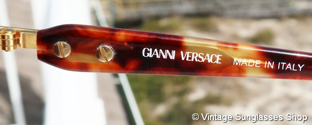 Vintage Versace S64 030 sunglasses were produced in only small quantities but were and still remain today one of the most highly sought after vintage styles. It's easy to see why, with the elaborate gold plated scrollwork at each temple with the inset Versace Medusa logo integrated into the design and set against the gleaming black ebony ear stems. The Versace S64 has moderately oversized lenses and thicker than normal and tapering ear stems. Tell
