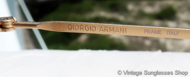VS4014: Vintage Giorgio Armani 613 744 sunglasses are a beautiful Italian interpretation of aviator sunglasses with matte gold front frame, eye catching Tortuga ear stems, and brown Armani mineral glass lenses. There were a number of iconic styles produced during the golden era of the House of Armani, but we think the Armani 613 is right at the very top. Tell