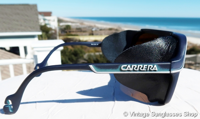 Vintage Carrera 5544 50 mirrored glacier glasses feature a strong, high performance frame with white highlights and highly reflective Carrera mirrored lenses that are sure to get you noticed at the apres-ski party too! You'll love the black leather side blinkers that give you extra protection from snow, wind, and glare coming in from the sides, and there is also a detachable leather nose guard that wraps around the nose bridge to give your nose added protection and keeps the frame from sticking to your face in extreme conditions. Tell